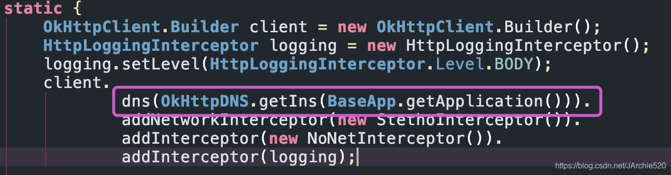 return Dns.SYSTEM.lookup(hostname); //如果为空走系统的解析服务