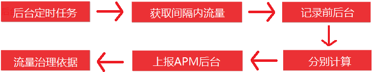 - 对于用户要尽可能的做到一段时间内流量消耗的精准度量,而且还要能够知道用户不同网络类型及前后台流量消耗情况