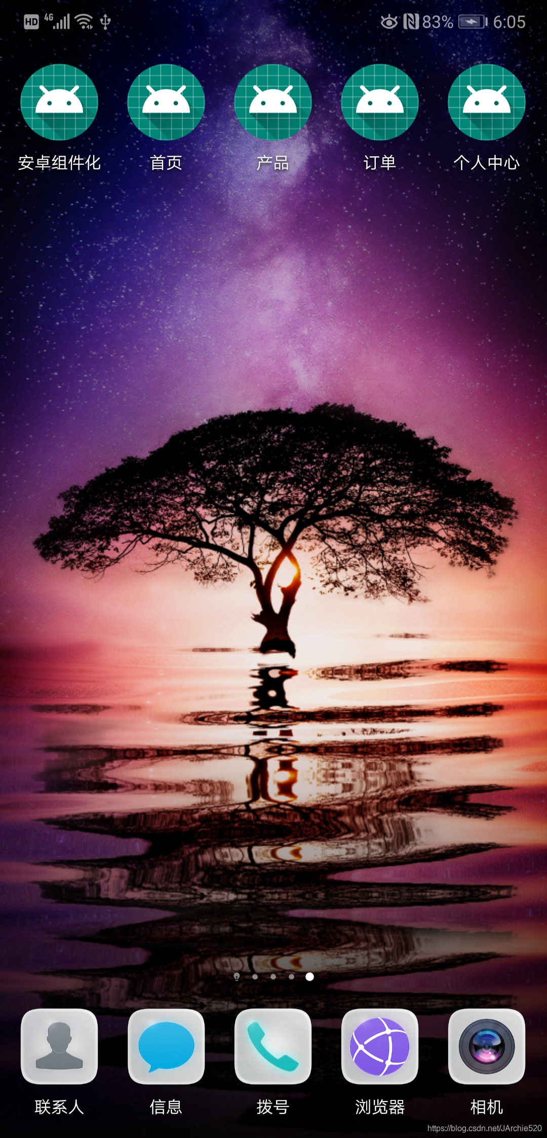 最左侧动图是集成化模式下运行的效果,右侧四张图分别是四个业务模块独立运行的结果,最后一张图是集成化和组件化模式下安装到手机桌面上的效果:
