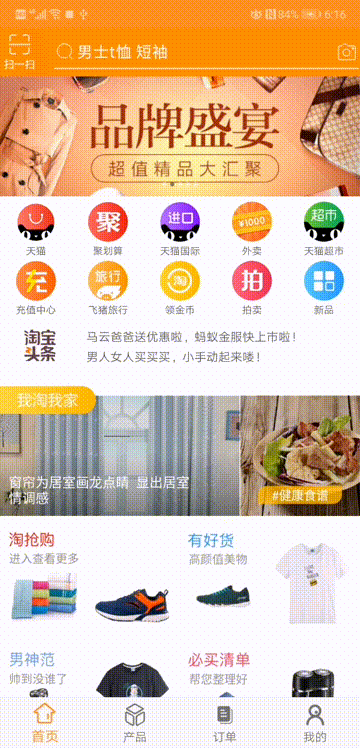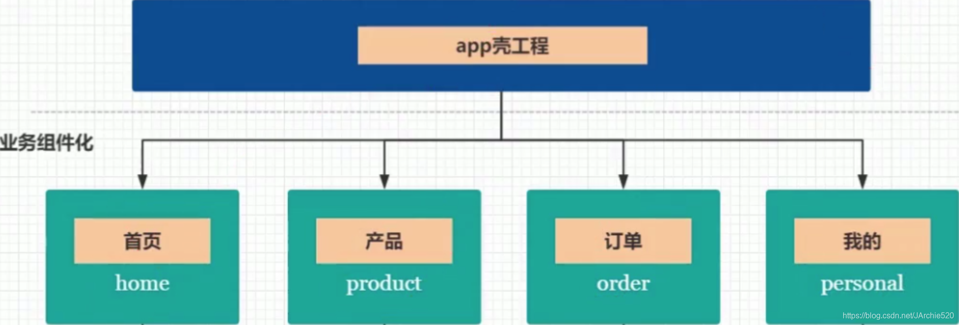 这里同样的还是分为四个业务模块:首页、产品、订单、个人中心,如下图所示: