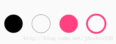 除了画实心圆,我们还可以画空心圆,画带有颜色的实心圆,画圆环等等,因为使用也比较简单我就不详细说明了,具体来看一下代码,已经给出了注释: