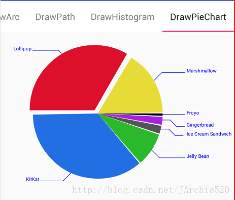 这里需要说明的有一点Paint.ANTI_ALIAS_FLAG这个属性是给画笔添加抗锯齿效果,以保证图形边缘平滑,具体的实现效果为: