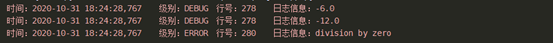 LOG_FORMAT = '时间:%(asctime)s\t级别:%(levelname)s\t行号:%(lineno)d\t错误信息:%(message)s'