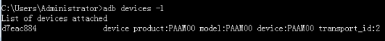打开cmd命令行窗口,输入adb devices -l命令来列出连接到电脑上的手机设备,如下