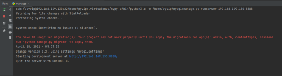 再次运行manage.py如下说明配置ip及端口成功