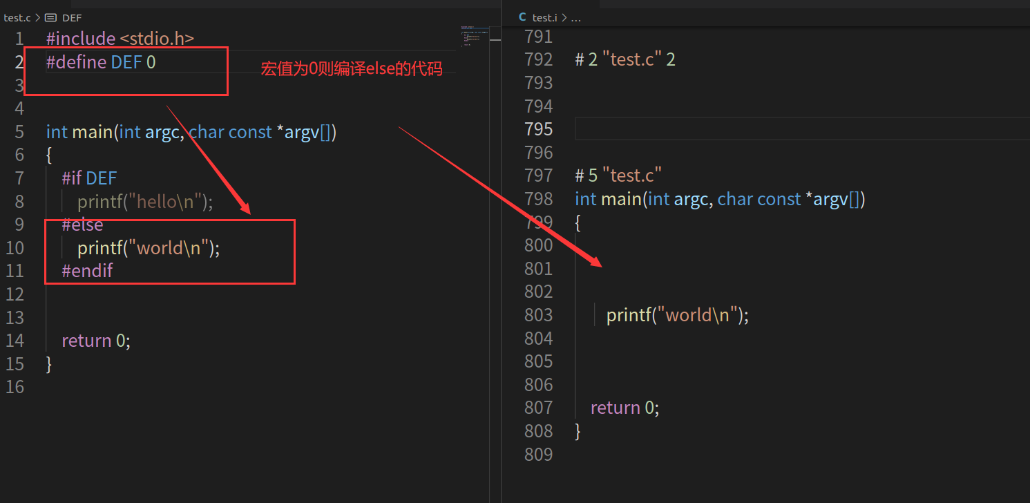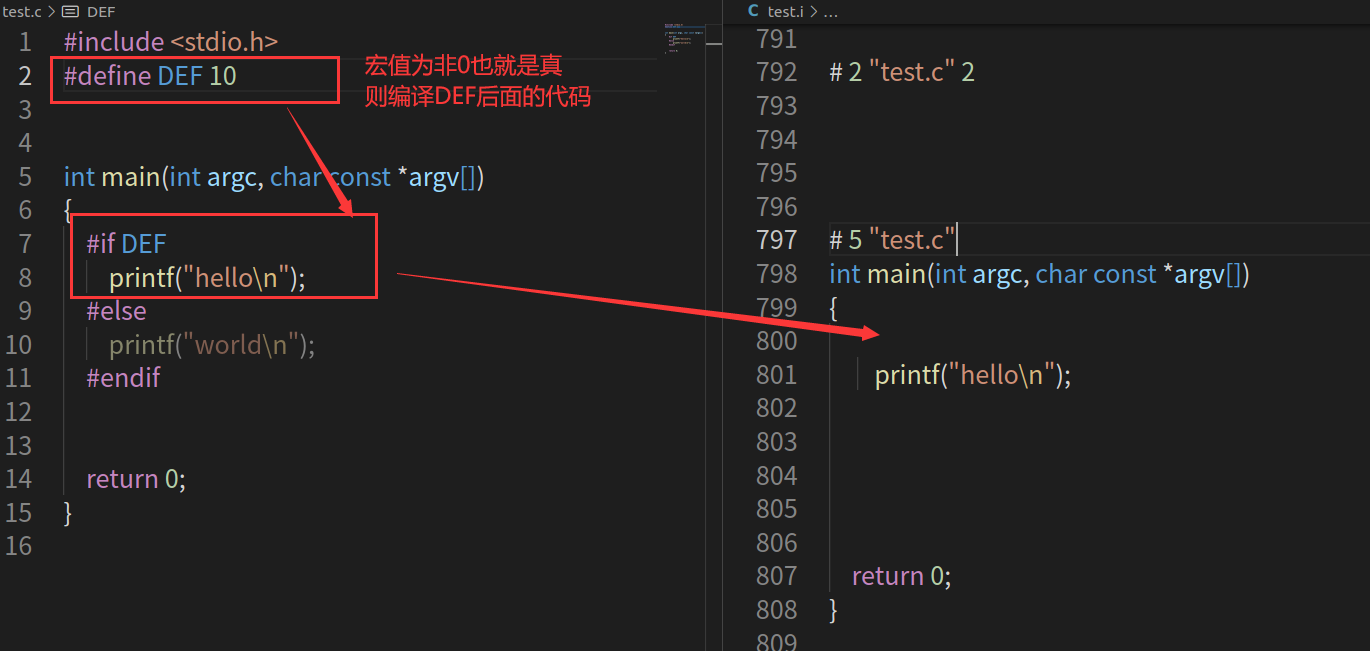 - 执行顺序:宏的值为非0也就是真则编译代码块1,否则编译代码块2。