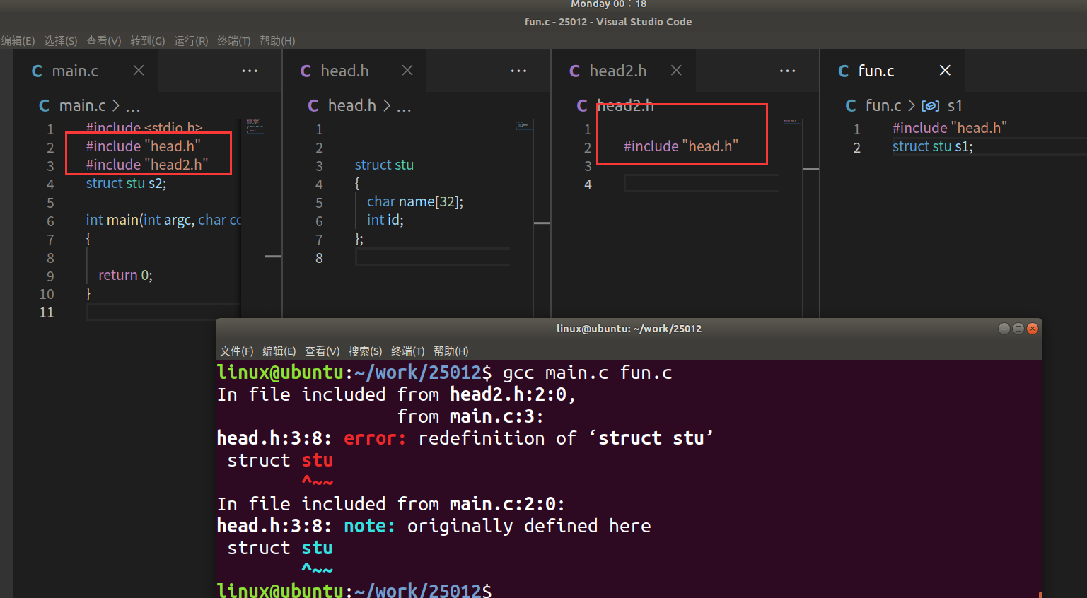 - 报错是因为结构体stu重复定义,因为包含结构体定义的head.h被多次引用。