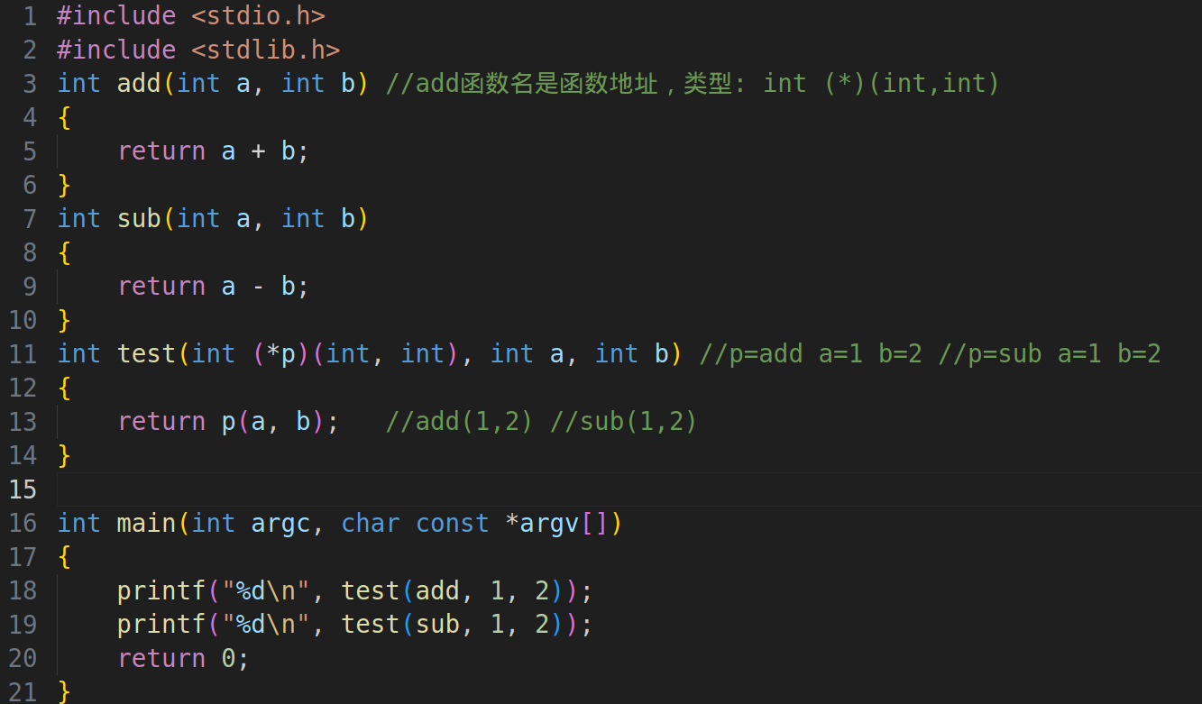 - 形参列表: 和数组中函数指针指向的函数的形参一致