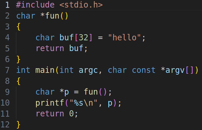 - 结果未知,因为返回局部变量地址,函数调用结束后没有权限使用栈区的空间了所以结果是不可控的。如果被其他进程占用,可能会报段错误或者打印奇怪的东西。