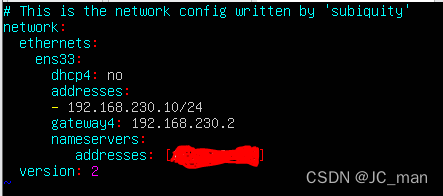 第二个gateway4则是你的网关,与你的网关ip设置成一样就行了(网关ip怎么看的请翻到前面)