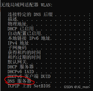 最后一个addresses则是你的本机dns地址了,打开你的cmd命令行,输入ipconfig/all即可查看你的dns地址,将其设置为你的dns地址就行