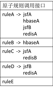 在2.0系统中,上面几个原子规则会并行执行,并对jsfA,hbaseA,redisA,jsfB重复调用多次,产生了无谓消耗,在3.0系统中,保证对重复性的查询只查一次