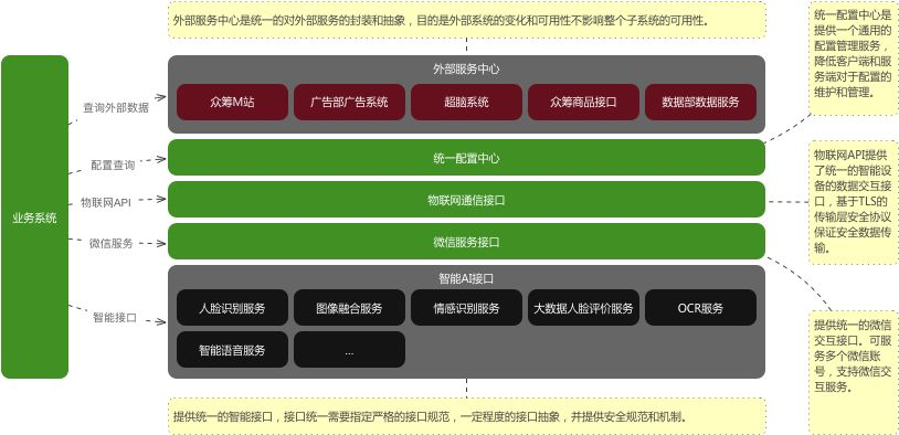 经过对整个产品技术架构的梳理和产品抽象,我们对一些基础的服务进行了抽离,形成了基础能力库,从而具有AI、AR/VR、语音、大数据等基础能力,使我们的基础技术能够满足产品搭积木的组合方式,以最灵活的方式,能够快速搭建一套新的产品。整合架构如下图所示: