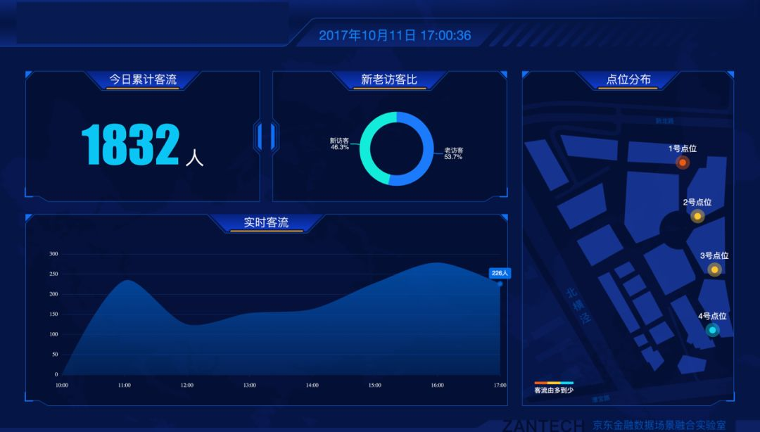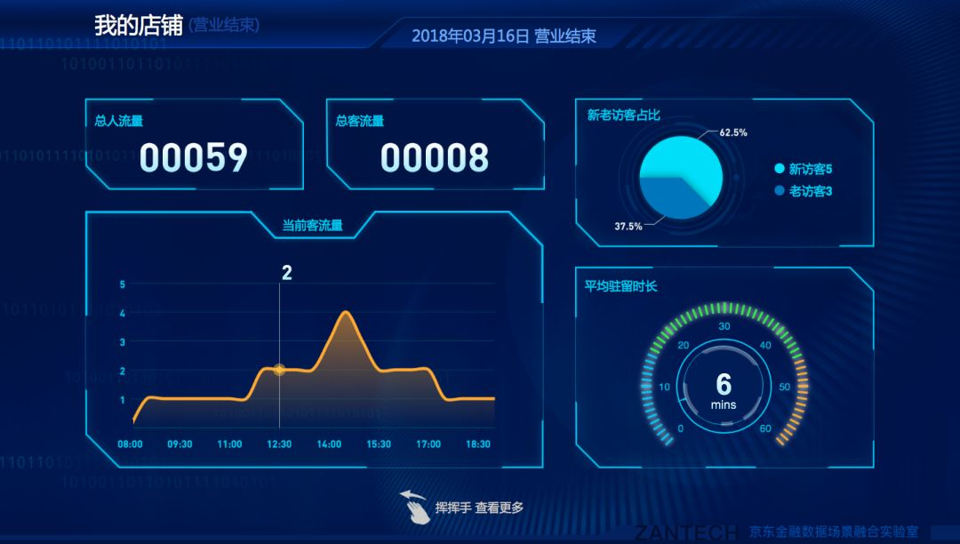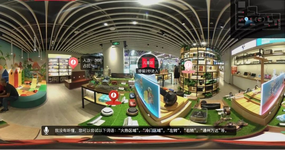 在部门成立早期,我们就看到了AR/VR技术的潜在价值,我们同样启动了AR/VR课题研究,深入虚拟现实技术,并结合了IOT技术,WIFI探针等技术组合,实现鹰眼系统。鹰眼系统能够全方位的还原场景,同时依托京东大数据和金融云,对门店客流、驻留时长、用户消费偏好等做深度用户数据分析,实现运营效果的量化评估,为客户分析挖掘潜在商业价值。