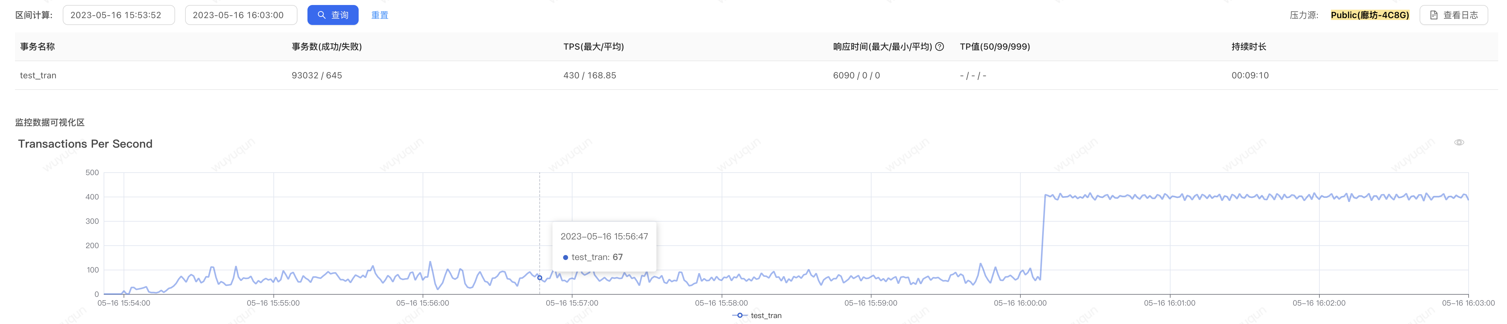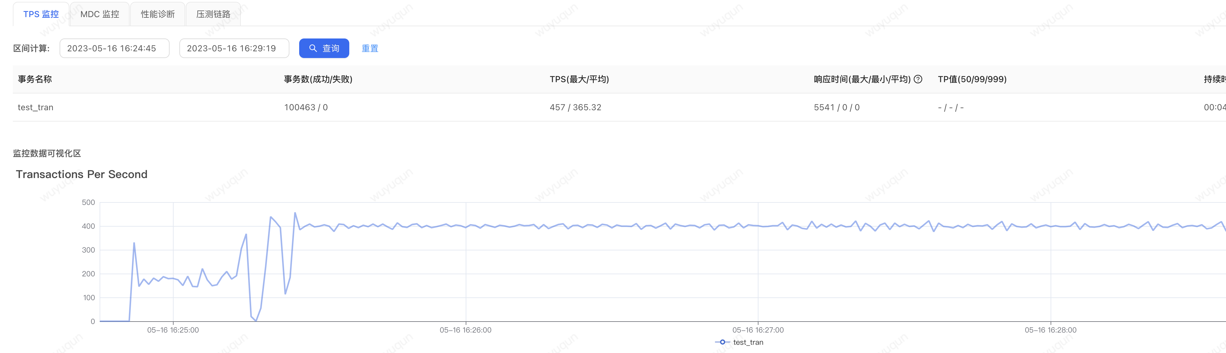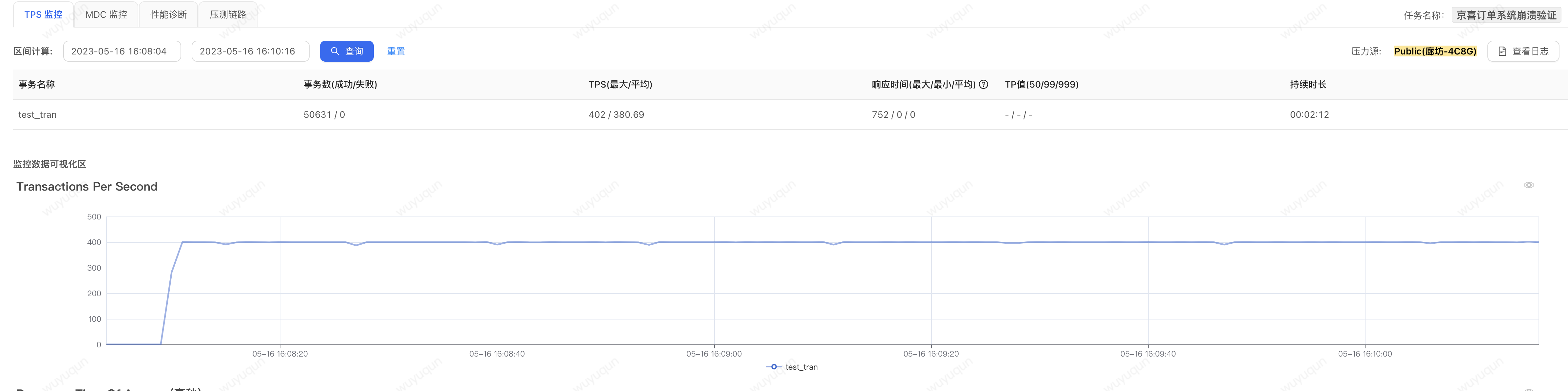在热启动状态下,我们在上面压测完一轮之后再压测一轮,我们可以看到这个时候系统就没有一个“预热过程”的“准崩溃状态”了