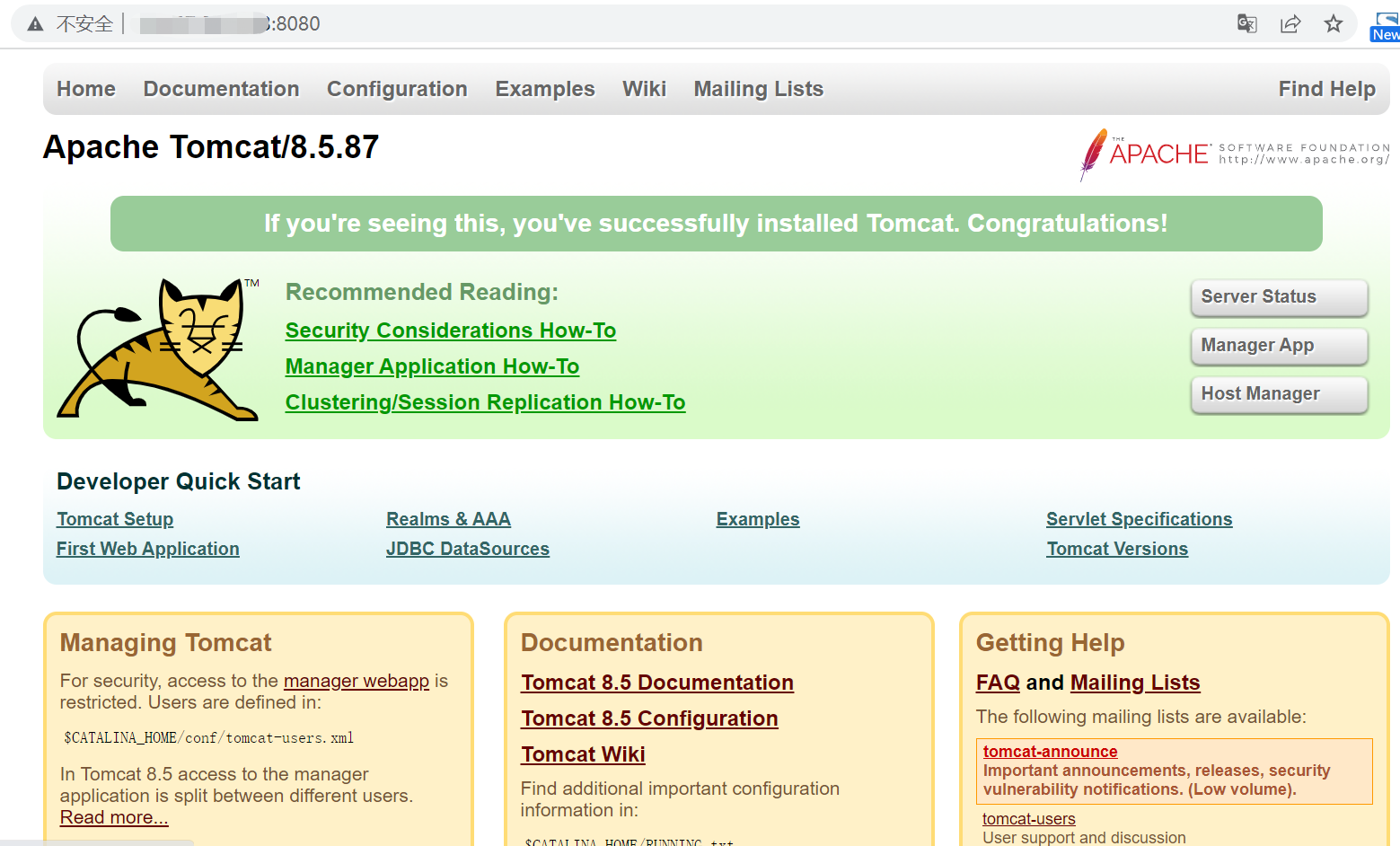在浏览器访问IP:8080 查看启动效果,如果访问失败,请查看8080端口是否在安全组中开放