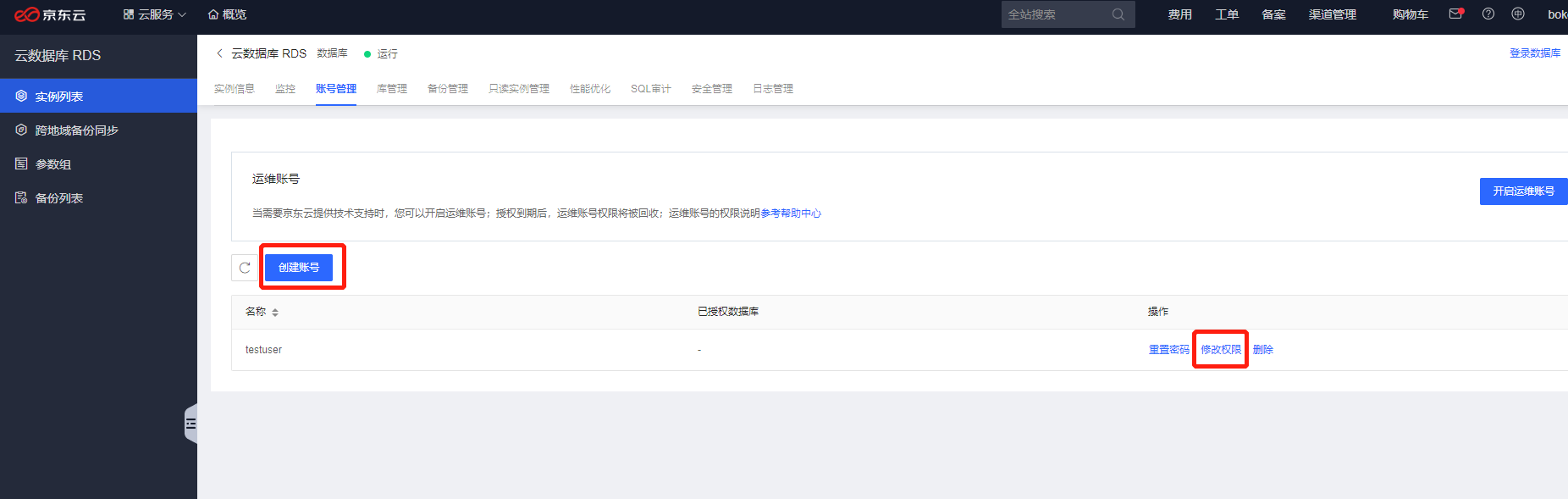 切换到账号管理标签页,先创建一个账号,然后点击账号操作中的修改权限