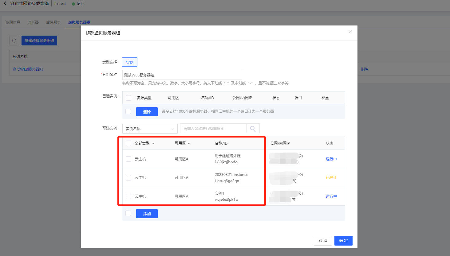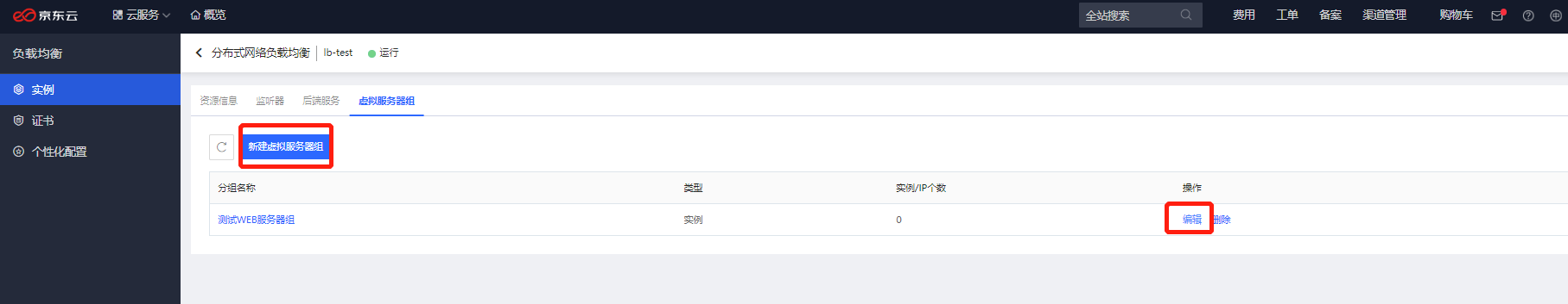 切换到虚拟服务器组标签页,新创建一个服务器组,创建后点击服务器组操作中的编辑