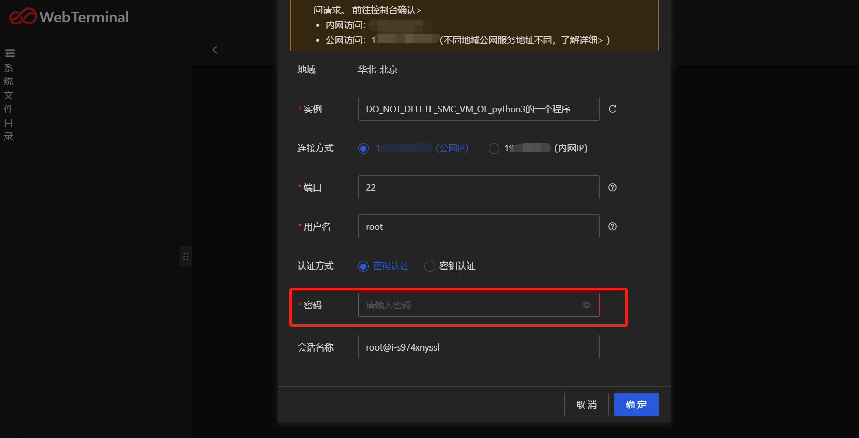 输入密码进行登录,如果忘记密码可以返回控制台修改密码