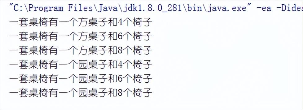 System.out.println(String.format("一套桌椅有一个%s和%d个椅子", table, count));