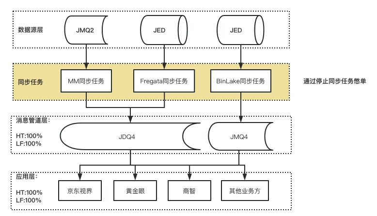 (2)流量的憋坝方式,流量无损憋坝压测是通过停止采集服务写JDQ写集群的方式憋流,不参与压测的业务方,可以切换到“JDQ4澜沧江_点击流新建流”(压测期间新建JDQ写集群),保证下游业务可以在憋流压测期间,正常消费流量实时数据,做到无损。