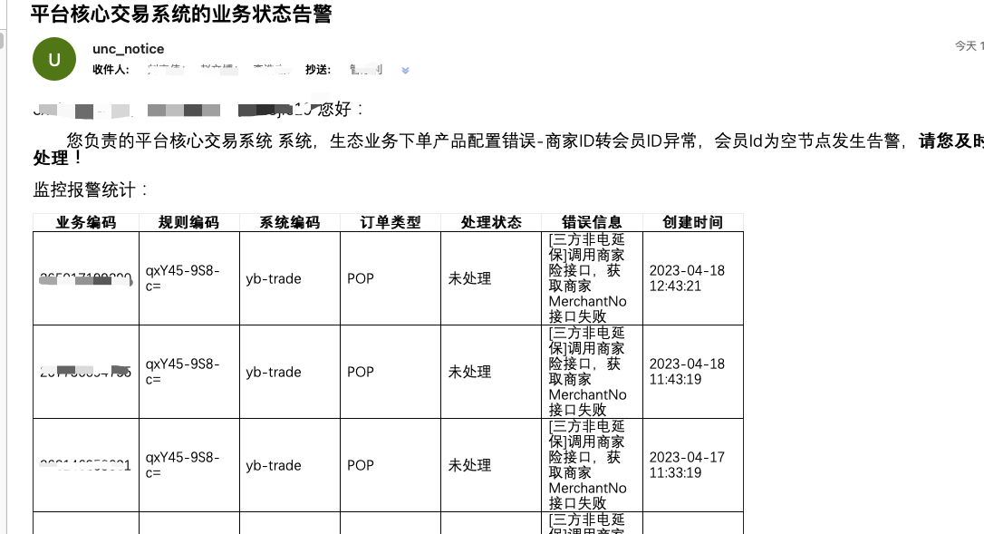 每周都会公示出上一周延保业务出现的问题,并通过内部通讯工具和邮件发送给业务方负责人,支持异常投保单的下载。业务收到邮件后会按照邮件中的攻略去操作,完成正确的投保。截止目前帮助业务侧完成40万+的异常投保单的重新投保。帮助业务降低了客诉率,也帮助保司拿到保费。(图2)