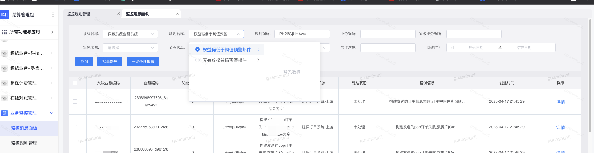 异常数据最终需要处理掉。在监控列表中可以一键处理异常数据
