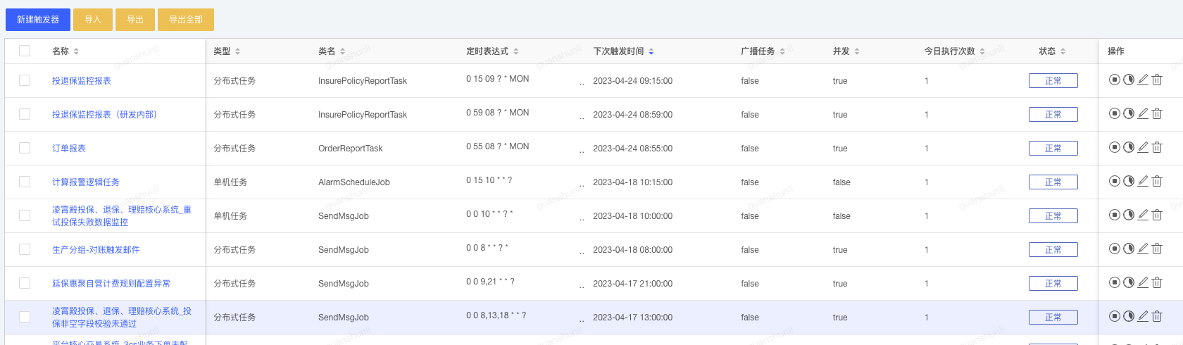 任务中心是指xxljob任务指调度中心,它和报警规则强绑定的。调度任务分为两类,一类是业务类任务,是动态去创建的任务,按照设置的corn执行。另一类是平台任务。用于维护业务类任务的,比如定期去删除没有异常的任务等。(图9)