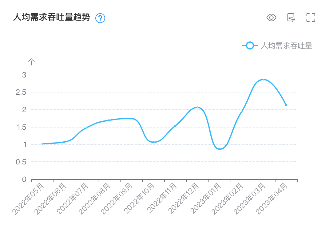自从2023/1月落地实践后,人均需求的吞吐量也大幅度提升,从之前 1.5 提升到 2.5 左右。