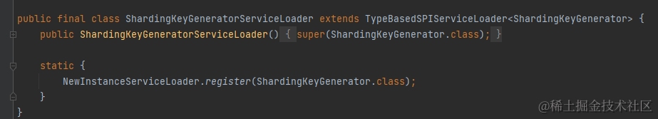源码中的 ShardingRule.class主要封装分库分表的策略规则,包括主键生成,核心在于底层调用的register方法,其中也是使用了ServiceLoader: