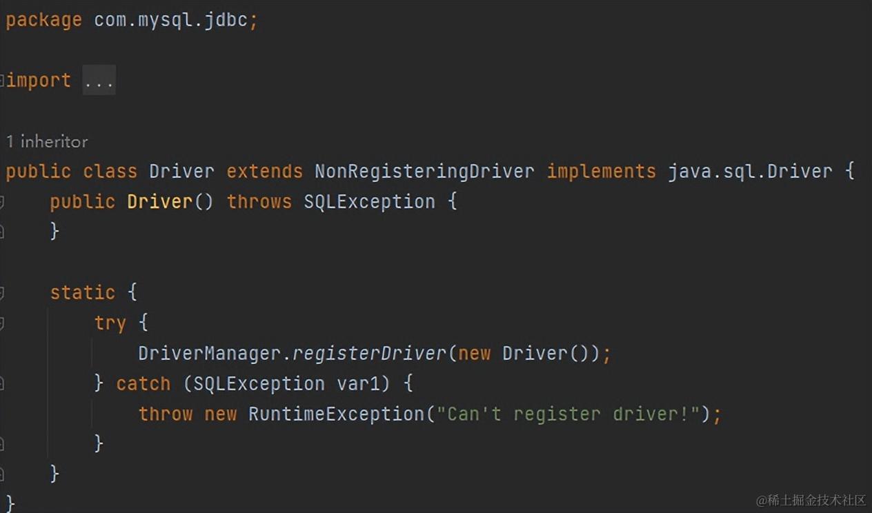 DriverManager是JDBC里管理数据库驱动的的工具类。一个数据库可能会存在不同实现的数据库驱动。我们在使用特定的驱动实现时,通过一个简单的配置就而不用修改代码就可以达到效果。 例如,在运用Class.forName(“com.mysql.jdbc.Driver”)加载mysql驱动后,会执行其中的静态代码把driver注册到DriverManager中。