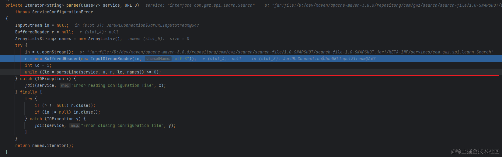 既然我们这里可以通过PREFIX + service.getName()来拼接一个资源路径URL,那是不是可以通过该URL来获取所指向的文件资源的内容?答案是肯定的,正如源码中parse()方法的实现一样, 通过Java提供的InputStream读取URL指向的文件内容。