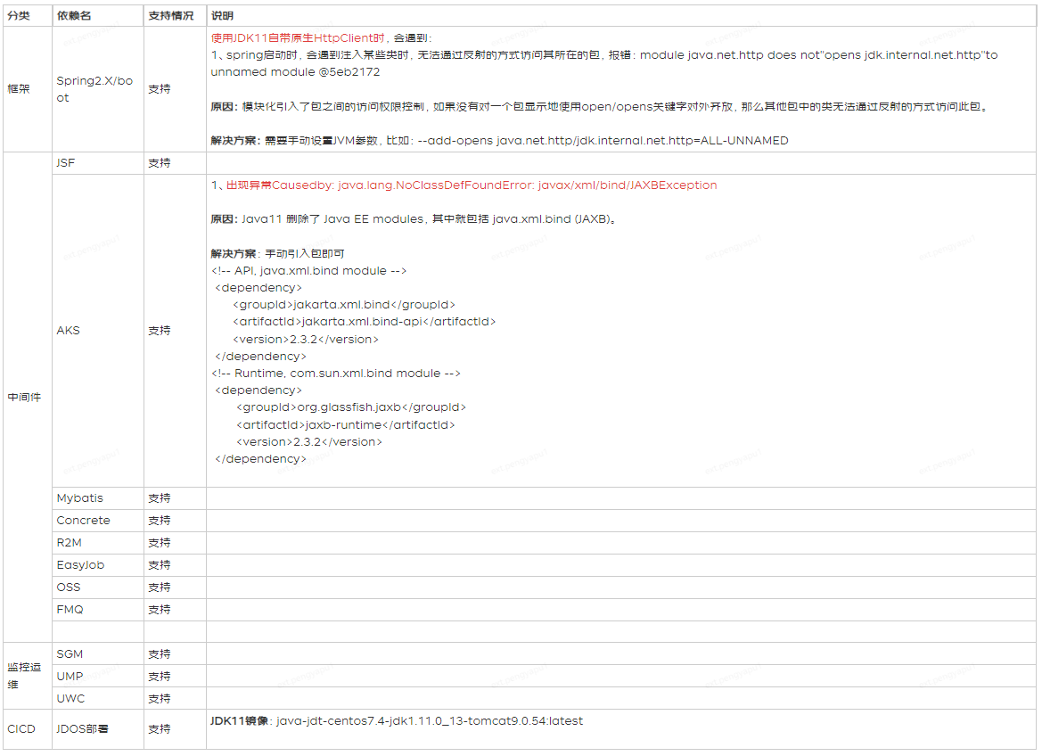 很多中间件都是基于jdk8构建的,都有可能遇到模块化兼容的问题,比如:jsf,需要jsf强制升级才可以使用模块化