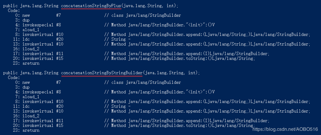 从图上可以看出两种拼接方法反编译后完全一样,没有差异,执行效率自然也是一样的。