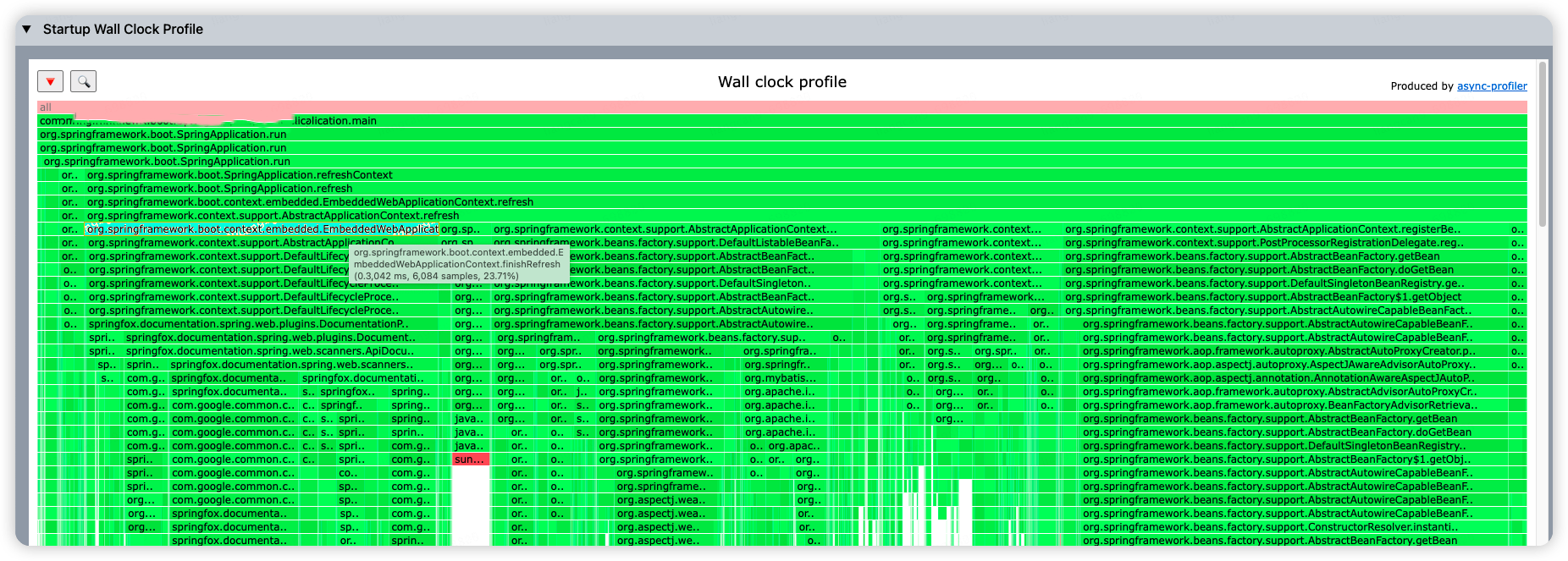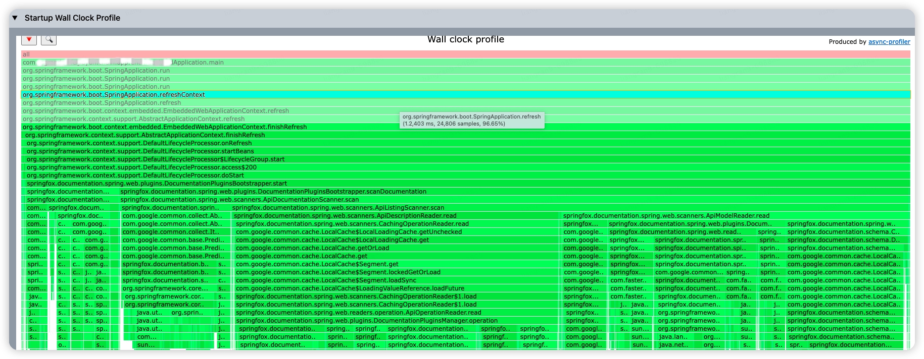 这部分火焰图可以看出,springfox在启动过程做了很多初始化,占了大量时间,对于不需要该功能的项目,可以直接下掉