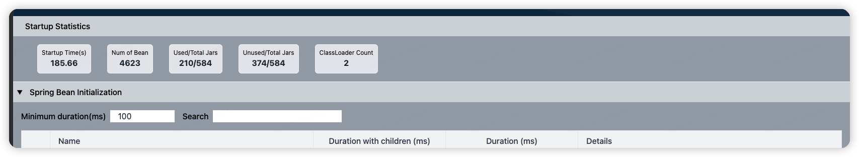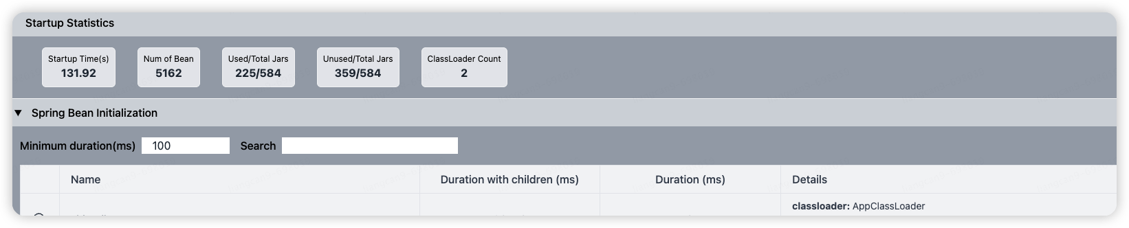 - Detail:包含类加载器、加载该Bean的线程信息(异步加载的话会有多个不同的)