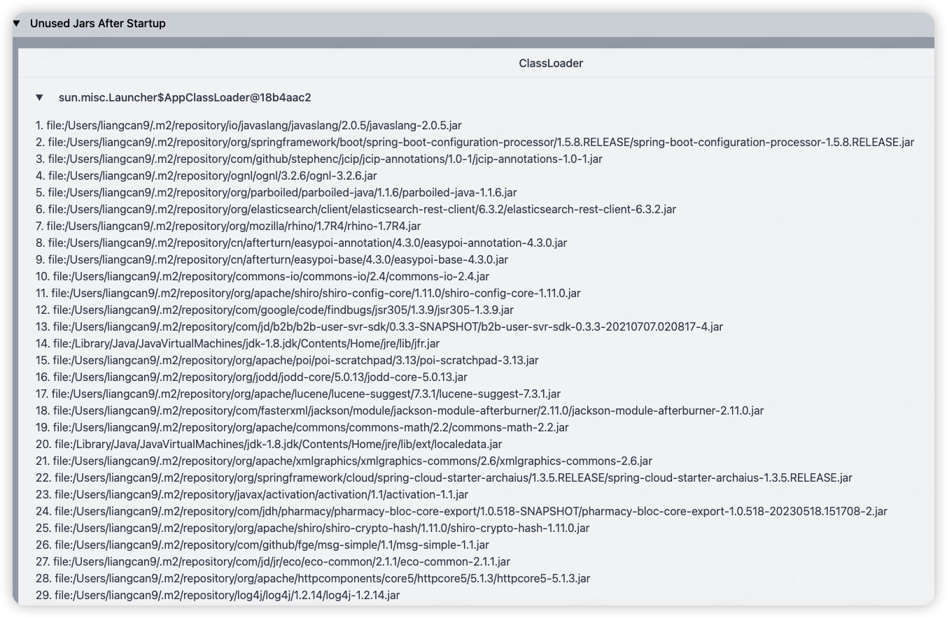 这一个观察项可以搜集到项目启动完之后,没有用到的Jar包