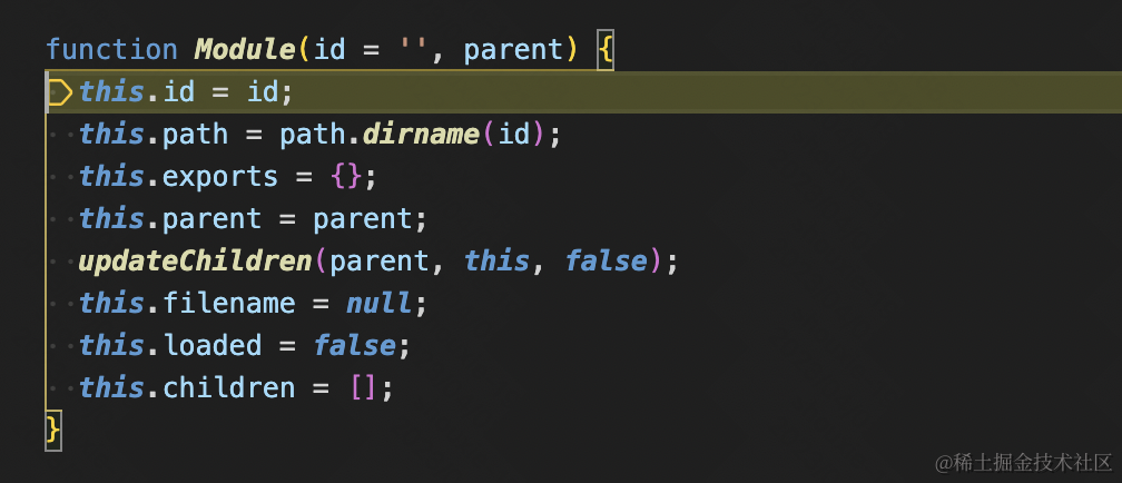 3.这里定义了Module类。id为文件名。此类中定义了exports属性