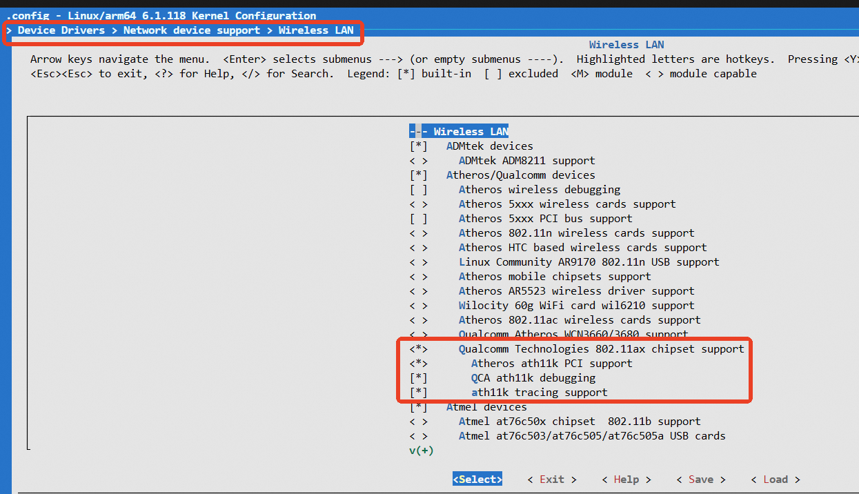 Linux6.1中make ARCH=arm64 menuconfig就能直接出现ath11k相关选项。