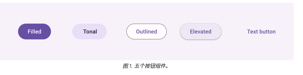 | Filled | 纯色背景,文字对比鲜明。 | 高强调度按钮。这些操作适用于应用中的主要操作,例如“提交”和“保存”。阴影效果突出了按钮的重要性。 |