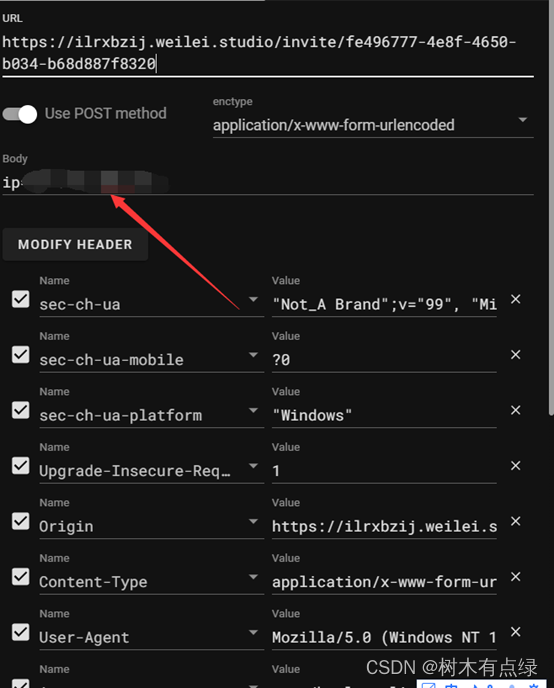 原来ip实际上就是post请求的东西,我们改一个验证一下(