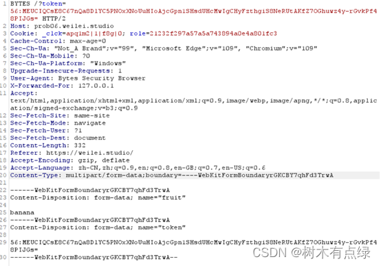 开局先说要用字节安全浏览器,改一下User-Agent绕过,然后说我们没有管理员权限,我们发现cookie里面的role是md5后的user,我们改成md5后的admin即可绕过,然后说要BYTES请求,我们把POST改成BYTES即可,然后让传data类型数据上去,传一下就出flag了(