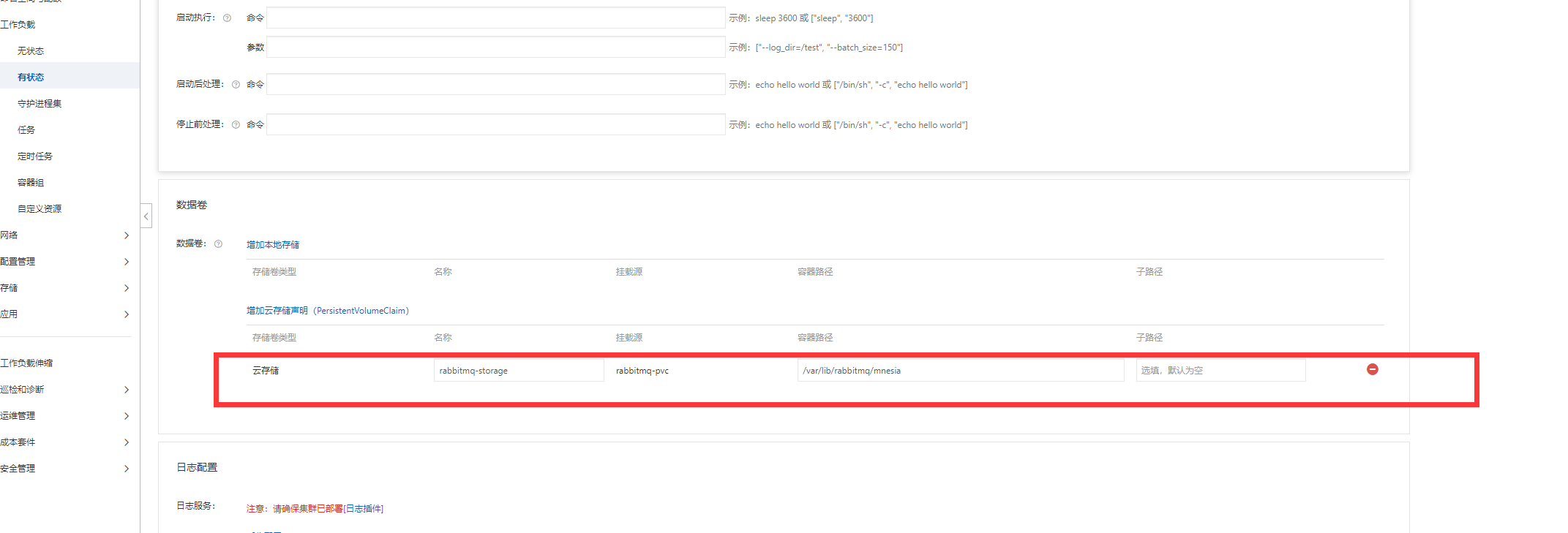 - mountPath: /var/lib/rabbitmq/mnesia # RabbitMQ 默认数据目录