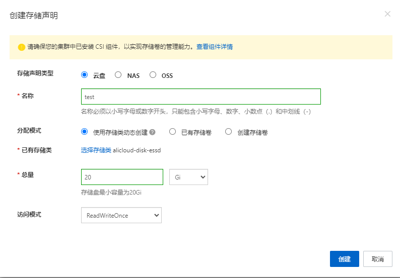 storageClassName: alicloud-disk-essd # 根据您的环境选择合适的storage class