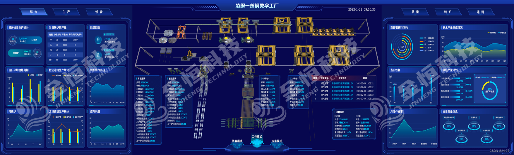 金恒科技携手凌源钢铁围绕转炉、精炼、连铸3个生产单元,通过智能装备、智能控制、智能模型等技术应用,打造可视、可控、可管的炼钢数字工厂。以生产过程的自动化、少人化和集控化为抓手,依托生产、质量、设备、物流等智慧管控系统,结合数字孪生技术,实现生产流程管理的智能化、质量过程管控的标准化、设备状态监测的实时化、物料流转跟踪的可视化,并最终形成数据资产,为凌源钢铁大数据中心的建设和数字化转型战略的推进提供重要支撑。