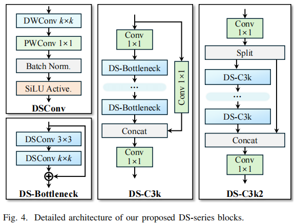 设计了 DS-Bottleneck、DS-C3k、DS-C3k2 等结构。