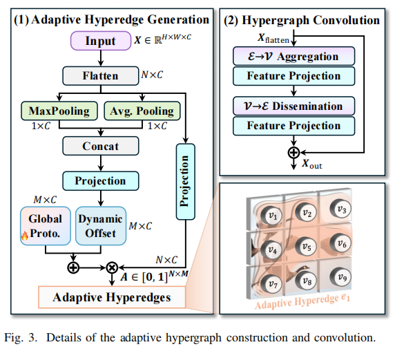 将 特征点视为超图顶点,通过自适应超边生成模块,动态学习不同位置和尺度之间的相关性。