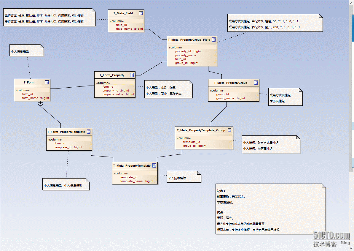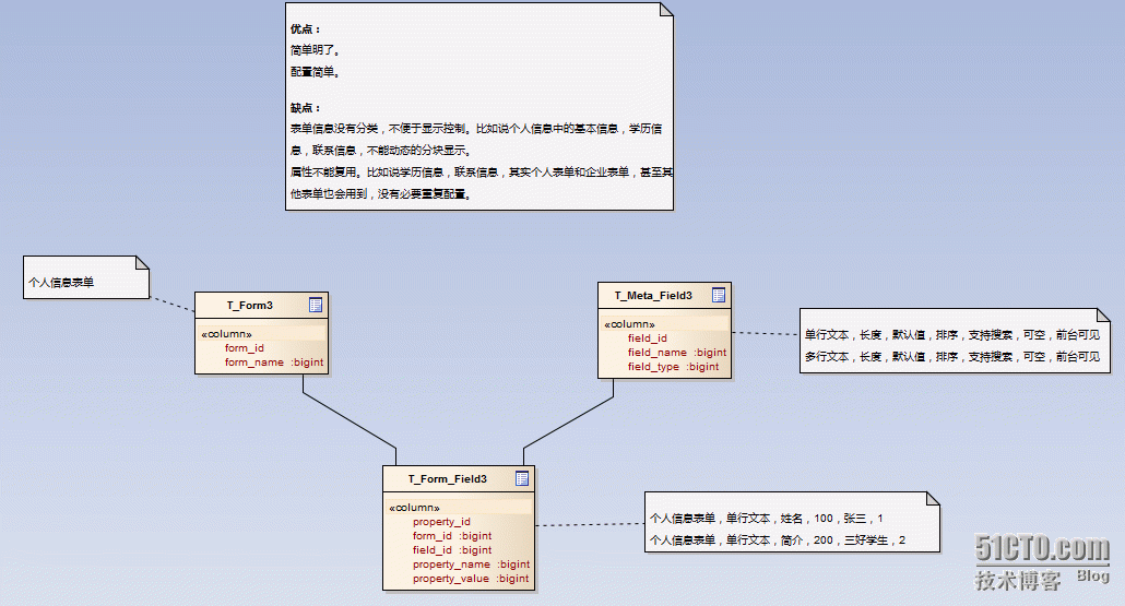 以上是我设想的三种动态表单的实现方式,图中是数据存储的简单表述。