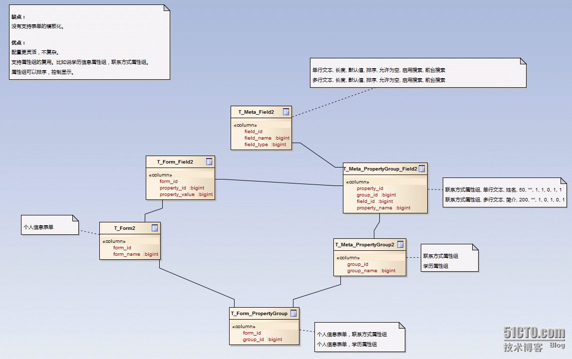属性不能复用。比如说学历信息,联系信息,其实个人表单和企业表单,甚至其他表单也会用到,没有必要重复配置。