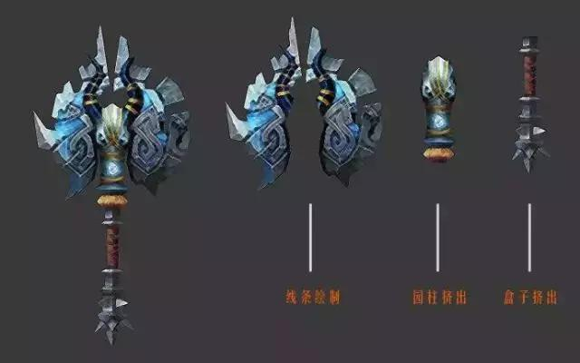 游戏模型师拿到游戏原画,首先看轮廓剪影,从正面推测出侧试(和顶视)的立体起伏关系,为道具模型的建立做好基础准备。